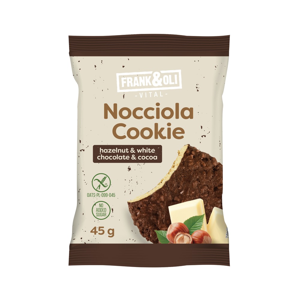„Nocciola“ sausainis – tai harmoningas intensyvaus kakavos aromato, minkšto avižinio pagrindo ir kreminio įdaro iš lazdyno riešutų bei baltojo šokolado be pridėtinio cukraus derinys. Kiekvienas kąsnis suteikia sodrų, tačiau subalansuotą skonį – sotų, švelnų ir natūraliai saldų. Tai šiuolaikiška klasikinio riešutinio deserto interpretacija, pateikta patogaus, be glitimo sausainio forma, puikiai tinkanti užkandžiui bet kuriuo dienos metu.