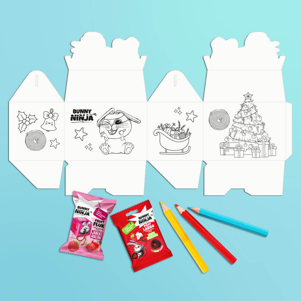 Be to, Bunny Ninja dovanų rinkinyje yra spalovoti pieštukai ir ant dėžutės atspausdinti paveikslėliai spalvinimui!